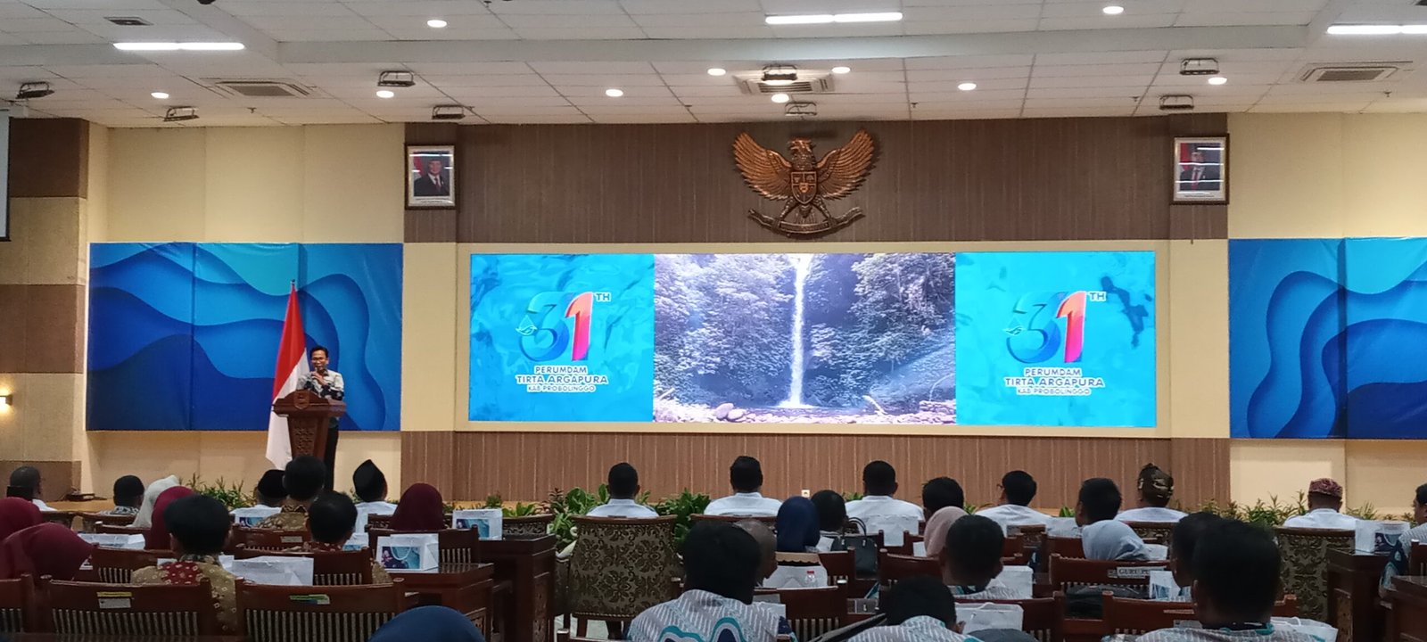 Probolinggo, KabarBromo66.com – “80 persen wilayah pelayanan kami saat ini sudah mengalirkan air selama 24 jam penuh, termasuk di daerah selatan seperti Banyuanyar, Tegalsiwalan, hingga Leces,” ujar Gandhi Hartoyo, Direktur Perumdam Tirta Argapura Kabupaten Probolinggo, dalam sambutannya saat peringatan Hari Ulang Tahun ke-31 Perumdam, Rabu (16/7/2025), di lantai 5 Gedung Madakaripura, Pemkab Probolinggo.