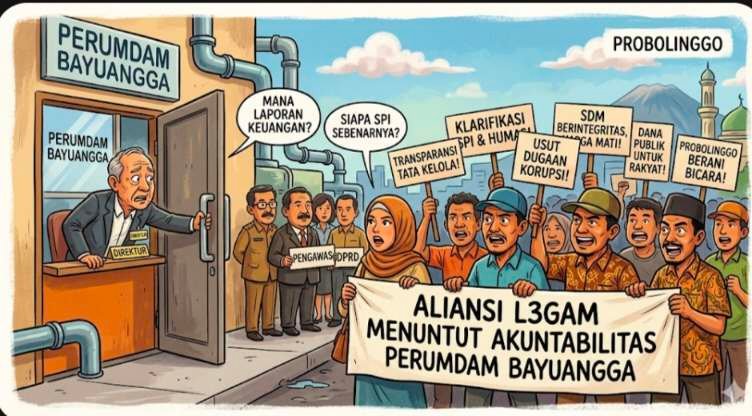 PROBOLINGGO – Sejumlah lembaga swadaya masyarakat yang tergabung dalam Aliansi L3GAM secara resmi mengajukan permohonan audiensi kepada Direktur Perumdam Bayuangga Kota Probolinggo. Langkah ini dilakukan guna meminta klarifikasi serta memperoleh informasi mendalam terkait manajemen dan tata kelola perusahaan daerah tersebut.