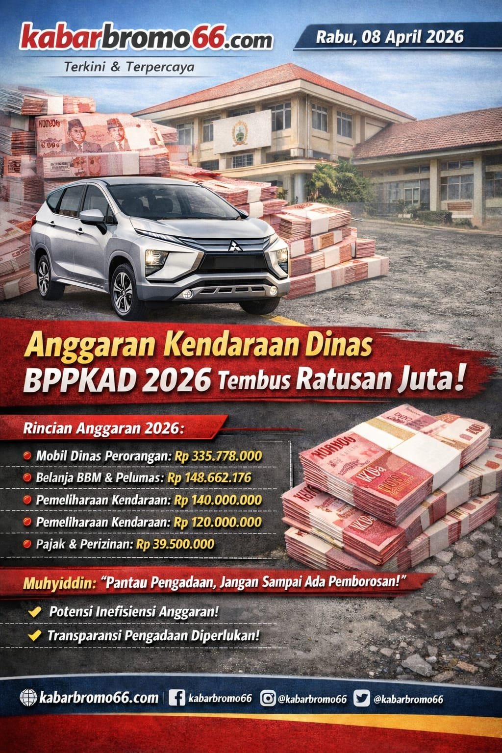 PROBOLINGGO, kabarbromo66.com – Alokasi anggaran untuk pengadaan dan pemeliharaan kendaraan dinas di Badan Pengelolaan Pendapatan, Keuangan, dan Aset Daerah (BPPKAD) tahun anggaran 2026 mendapat perhatian dari aktivis kebijakan publik. Ketua Libas88 Nusantara, Muhyiddin, meminta pemerintah daerah untuk memastikan prinsip efisiensi dalam penggunaan anggaran operasional tersebut.
