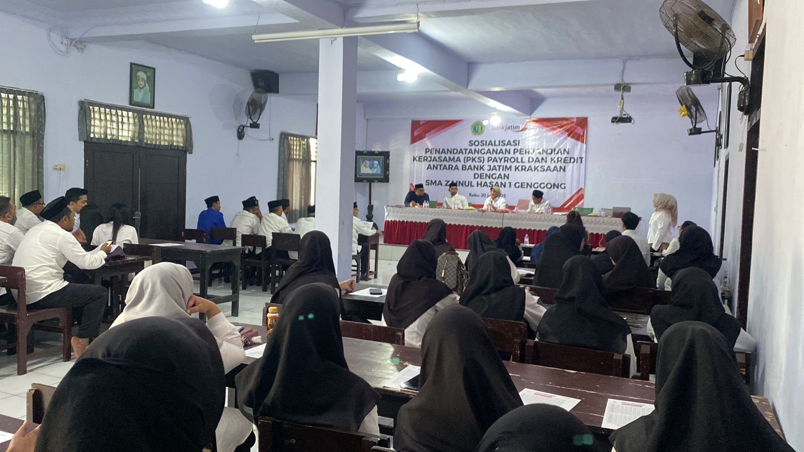 Rabu (30 Juli 2025), bertempat di Aula Barozain, SMA Zainul Hasan 1 Genggong menjalin kerja sama dengan Bank Jatim Cabang Kraksaan melalui penandatanganan Perjanjian Kerja Sama (PKS) layanan payroll dan kredit pegawai.