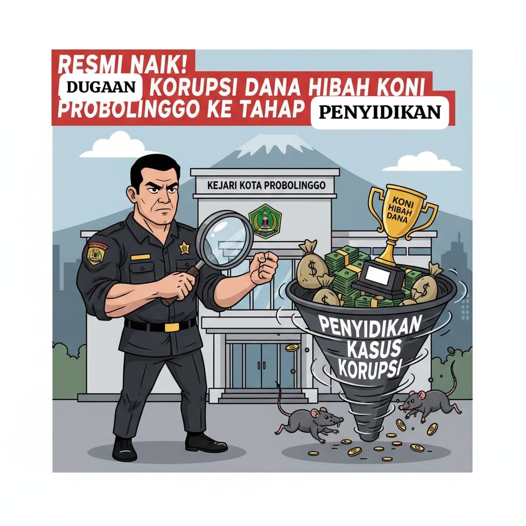 PROBOLINGGO, kabarbromo66.com – Kasus dugaan penyelewengan dana hibah Komite Olahraga Nasional Indonesia (KONI) Kota Probolinggo kini memasuki babak baru. Setelah melakukan pemeriksaan intensif terhadap sejumlah pihak dan dokumen keuangan, Kejaksaan Negeri (Kejari) Kota Probolinggo resmi meningkatkan status perkara tersebut dari penyelidikan ke penyidikan.
