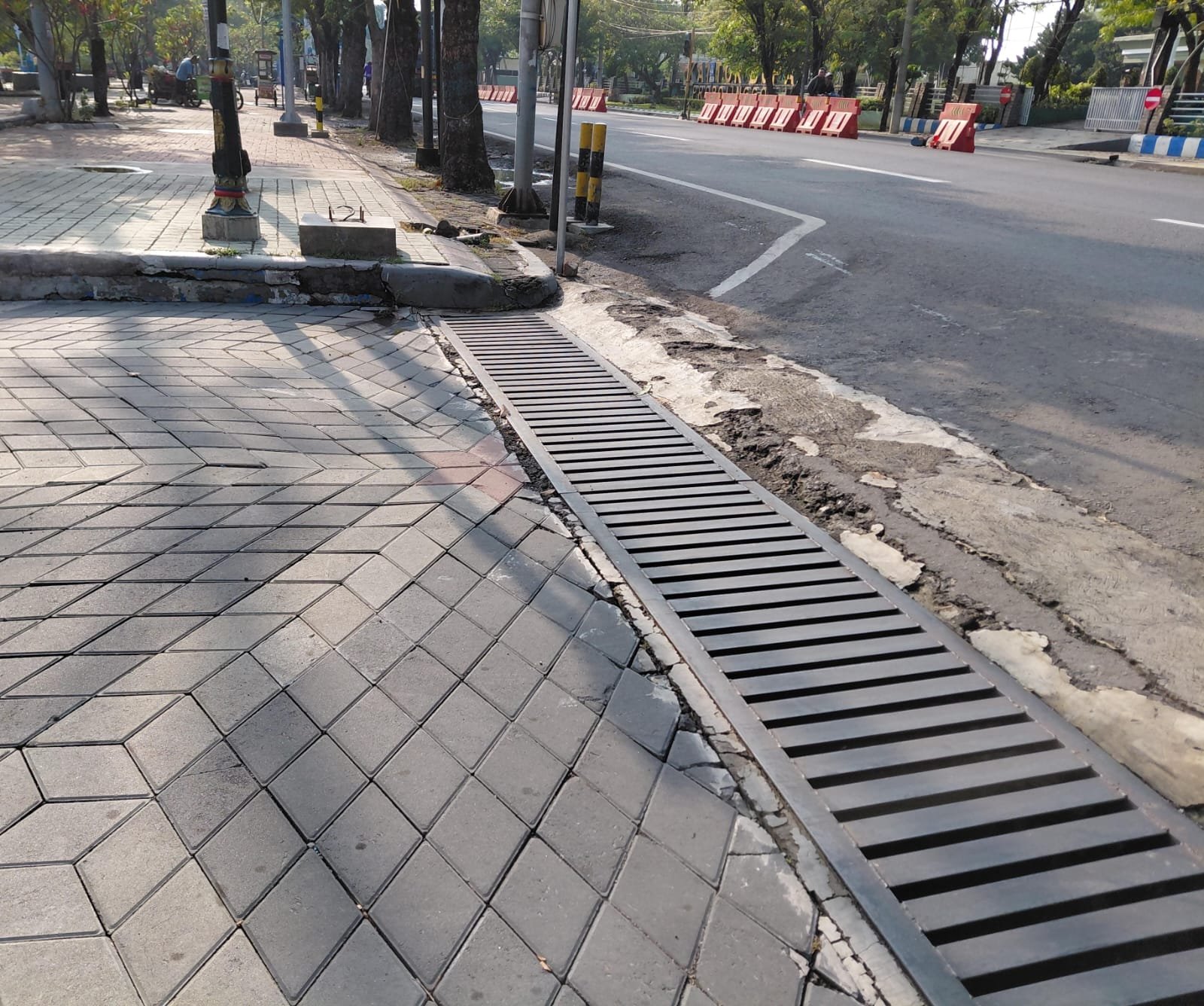 “Sangat disayangkan, dengan anggaran total mencapai 4,6 miliar rupiah, kita masih menemukan genangan air di titik-titik tertentu saat hujan. Ada indikasi ketidakteraturan kemiringan (slope), terlihat adanya genangan air atau jejak sedimen di sela-sela paving block dan area pinggir. Ini mengindikasikan bahwa leveling atau kemiringan permukaan tidak diarahkan dengan benar menuju saluran pembuangan. Selain itu, ada saluran air terbuka yang berisiko, desain saluran air di samping trotoar tampak terbuka tanpa grill yang memadai di beberapa titik. Ada indikasi melanggar prinsip safety design bagi pejalan kaki, terutama anak-anak,” ujar Feri saat ditemui di lokasi.