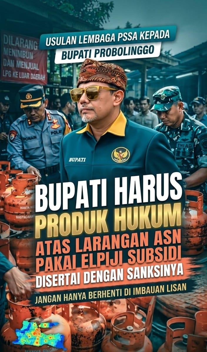 PROBOLINGGO, kabarbromo66.com – Lembaga Pusat Studi Supervisi dan Advokasi (PSSA) memberikan apresiasi sekaligus catatan kritis terhadap langkah Bupati Probolinggo, M. Haris Damanhuri, yang mengimbau Aparatur Sipil Negara (ASN) untuk tidak menggunakan LPG 3 kg di tengah kelangkaan yang melanda wilayah tersebut.