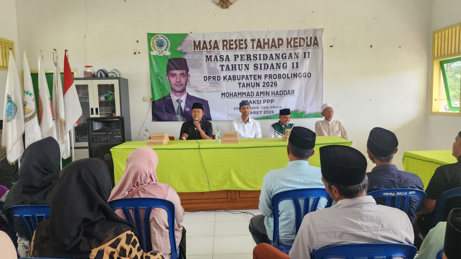 Probolinggo – Anggota DPRD Kabupaten Probolinggo dari Fraksi PPP, Mohammad Amin Haddar, melaksanakan kegiatan Masa Reses Tahap Kedua Masa Persidangan II Tahun Sidang II Tahun 2026 di Kantor Polindes Desa Brani Kulon, wilayah Daerah Pemilihan (Dapil) Maron, Tiris, dan Krucil.