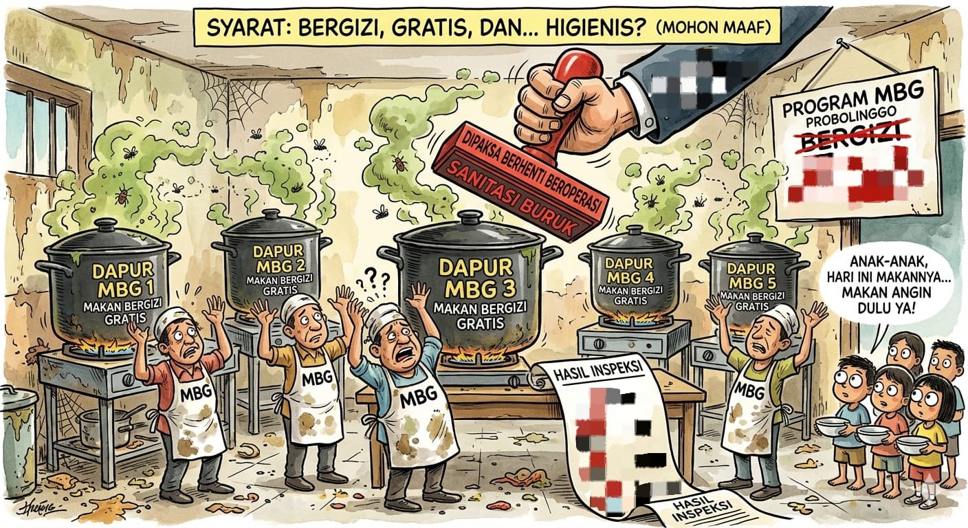 Daftar SPPG Probolinggo yang Diberhentikan Sementara: SPPG Kraksaan Bulu 2: Tidak ada IPAL; SPPG Banyuanyar Banyuanyar Tengah: Tidak ada SLHS; SPPG Pakuniran Bucor Kulon: Tidak ada IPAL; SPPG Sumberasih Lemah Kembar: Tidak ada IPAL; SPPG Kraksaan Kandang Jati Wetan: Tidak ada SLHS dan IPAL. (red)